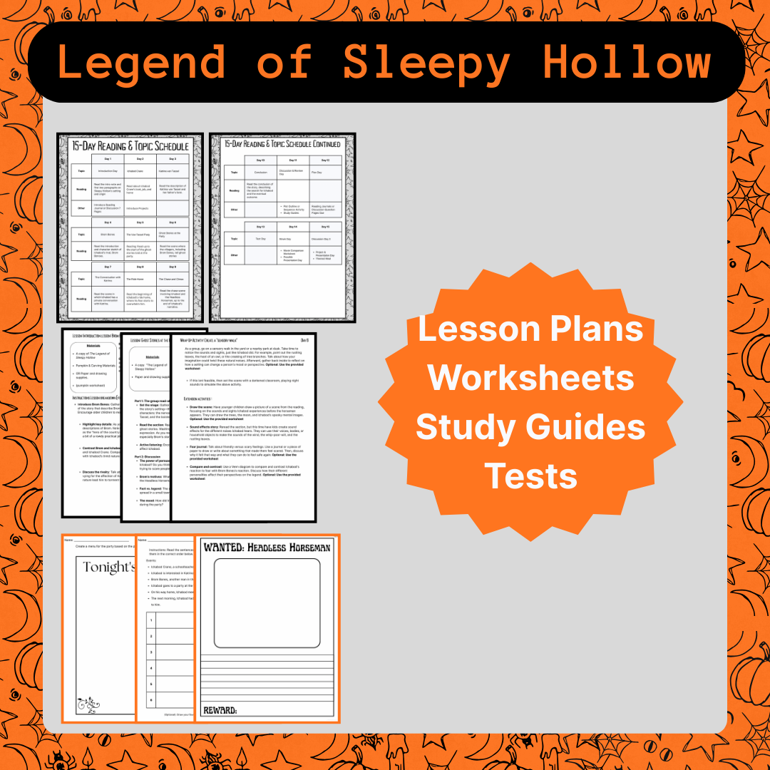The Big-Whole Family or Multi-level Classroom Unit is a 15-Day Unit study that breaks down the Reading of The Legend of Sleepy Hollow into 10 days, so that we can dive deep into the literature with profound family-group-centered lessons, end-of-lesson wrap-up activities, and multiple extension activities that have several (90+) optional worksheets available. Older students will challenge themselves independently using the Reading Journal portion of this study, where they will engage with journal entries, discussions, comprehension questions, and literary element reviews and extensions.